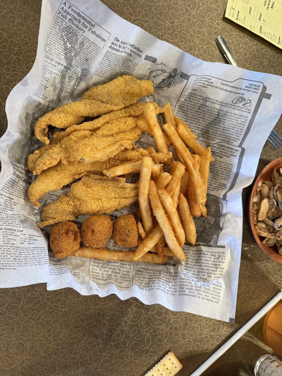 Portion sizes tend to lean toward generous, making it a solid pick for those looking for a filling lunch or dinner, especially families or groups. The “Little Fryer’s” menu provides kid-friendly portions of favorites like chicken strips and catfish, reinforcing the family-friendly nature of the place. While food can take its time to arrive, the quality of items like the fried catfish, grilled shrimp skewers, and crab cakes shows they’re prepared with care rather than rushed.