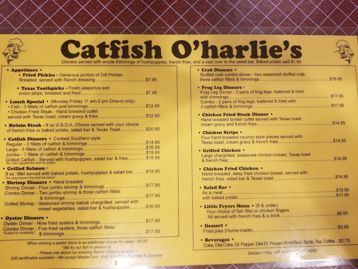 Catfish O'Harlies Menu